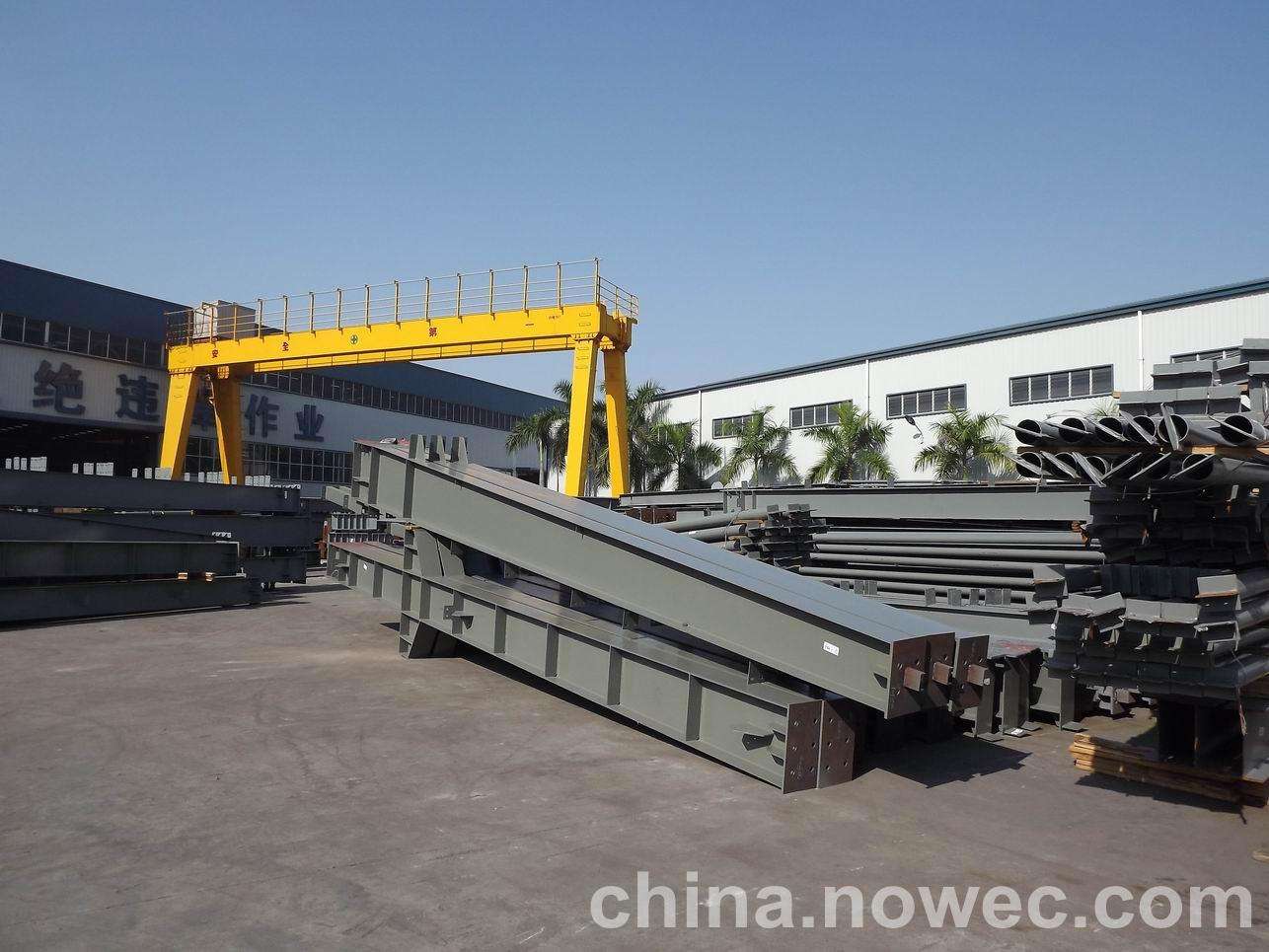 条状单元一般沿长跨方向分割,其宽度约为1~3个网格,其长度为l2或l2/2(l2为短跨跨距)。块状单元一般沿沙河网架平面纵横向分割成矩形或正方形单元。每个单元的重量以现有起重机能胜任为准。条(块)与条(块)之间可以直接拼装,也可空一网格在高空拼装。由于条(块)状单元是在地面拼装,因而高空作业量较高空散装法大为减少,拼装支架也减少很多,又能充分利用现有起重设备,故较经济。这种安装方法适用于分割后网架的钢度和受力状况改变较小的各类中小型网架,如两向正交正放四角锥、正放抽空四角锥等网架。